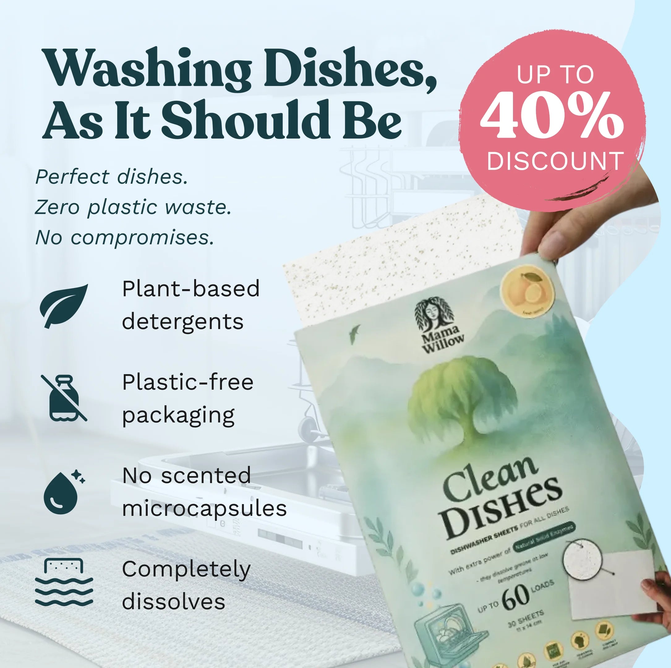 Environmentally friendly dishwasher sheets