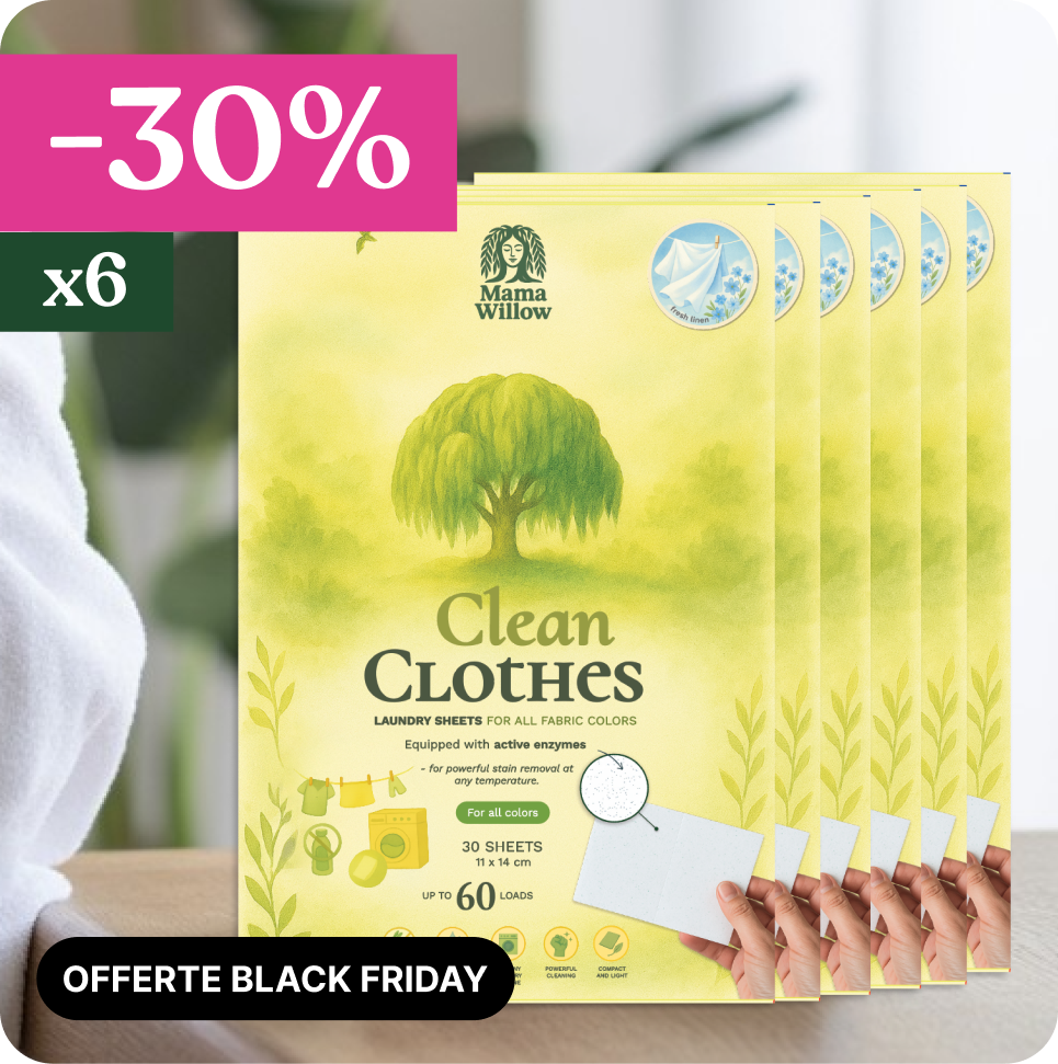 Sei confezioni di Clean Clothes per mesi di bucato naturale ed efficace: il tuo più grande risparmio finora.