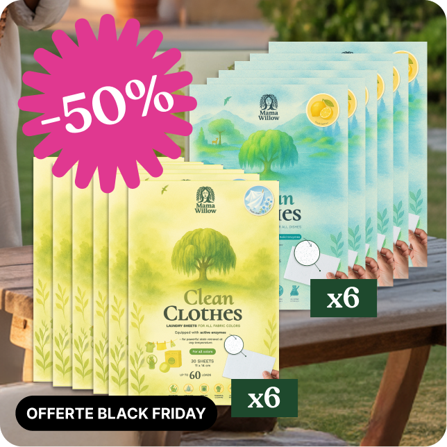 Sì. I panni per lavastoviglie MamaWillow sono biodegradabili al 100% e si decompongono completamente entro 28 giorni, senza lasciare traccia di microplastiche. Ottieni una pulizia efficace e proteggi il pianeta a ogni lavaggio.